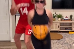 国外这哥们挺会玩啊!竟然把老婆当篮球玩