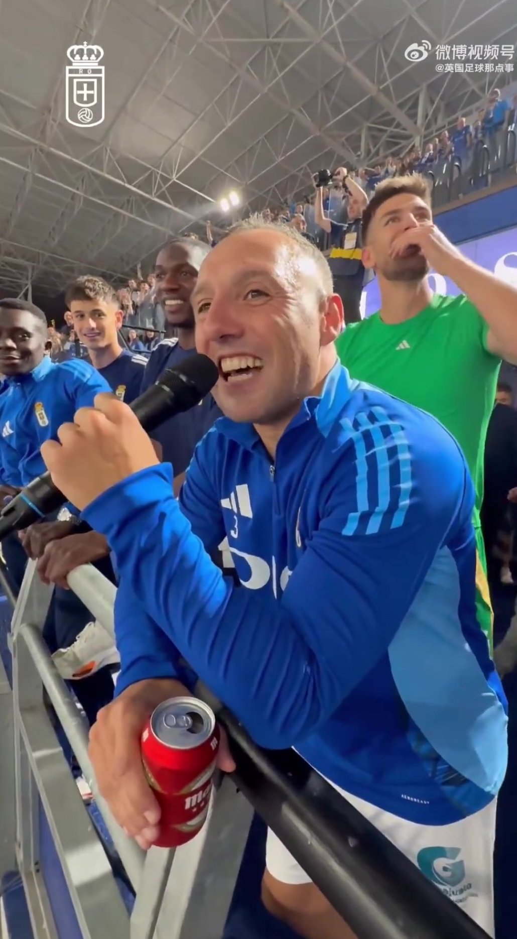 40岁卡索拉帮助母队奥维耶多成功升上西甲,深情为球迷献唱