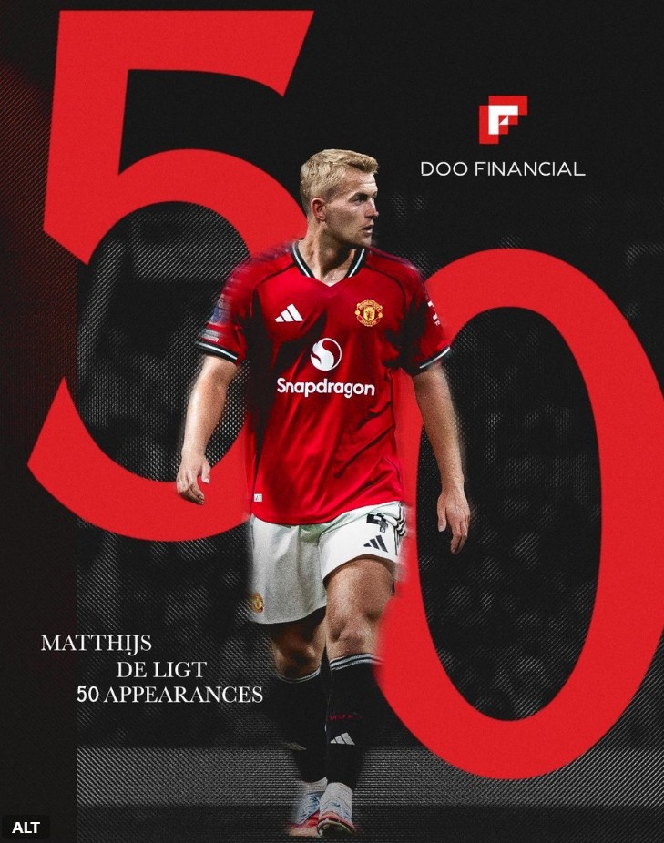 德里赫特迎曼联生涯50场里程碑,球队官推晒海报祝贺